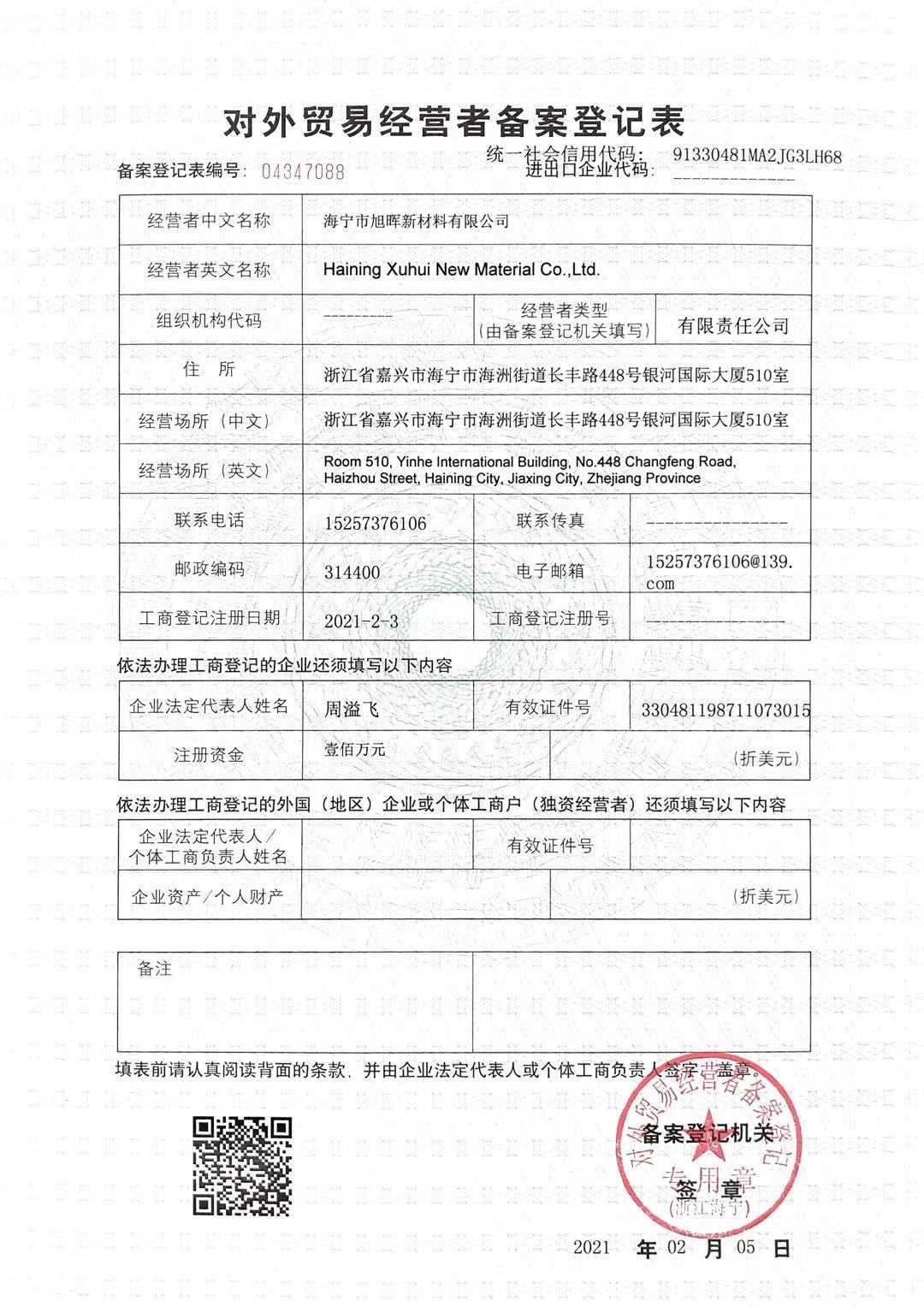 Export Company Name: | Haining Xuhui New Material Co., Ltd |